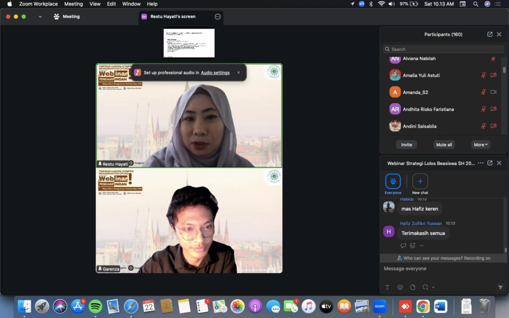 Restu Hayati, selaku moderator sekaligus awardee Stipendium Hungaricum 2024, menyampaikan bahwa jumlah pendaftar webinar tahun ini mencapai 236 peserta melonjak signifikan dibanding tahun sebelumnya yang hanya 114 peserta. Acara dibuka secara resmi oleh Ketua PCIM Hongaria, Agustiyara, yang juga merupakan awardee beasiswa tahun 2022.